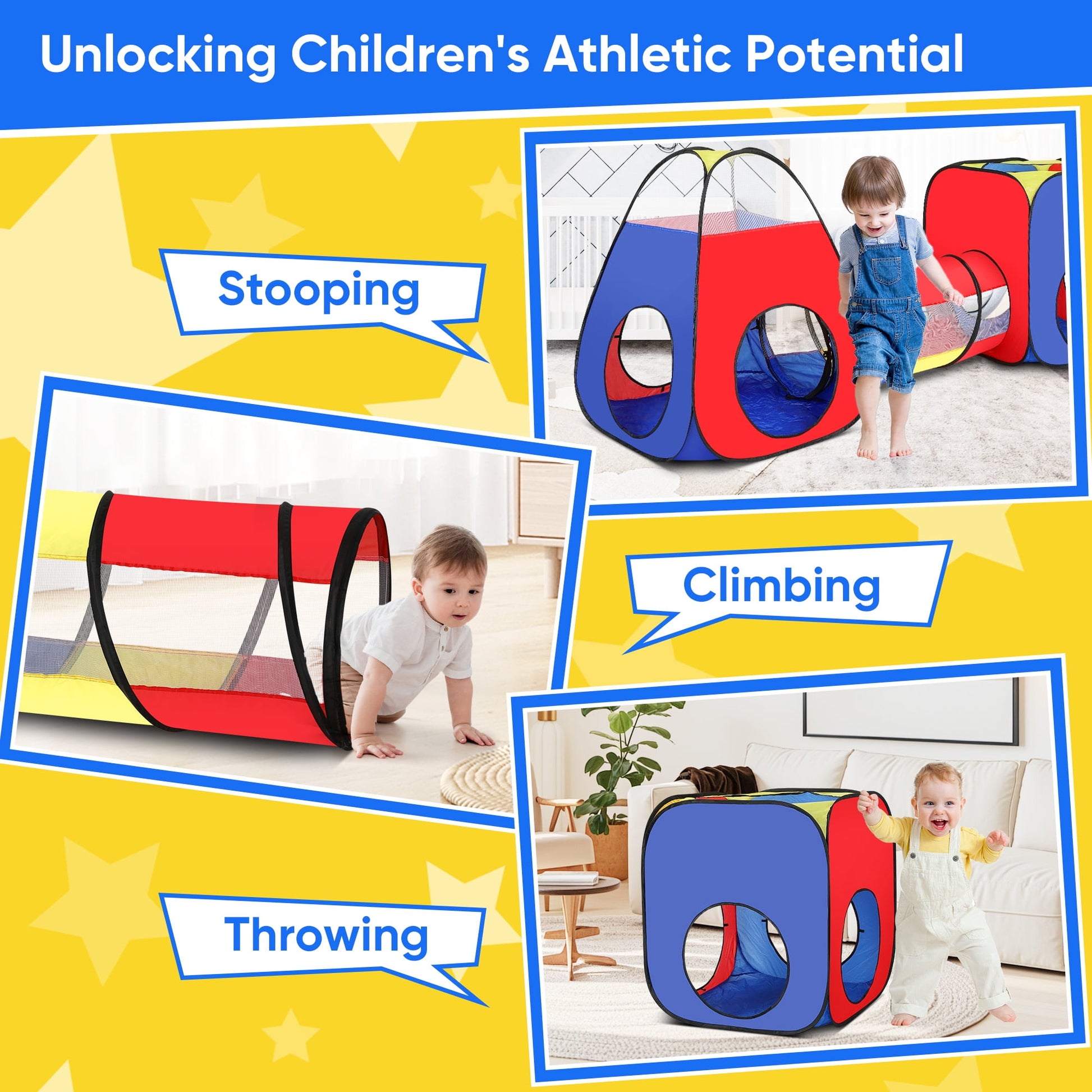 【🌈 3-in-1 Design】This 3-in-1 kids' play tent includes a pop-up tent, a crawling tunnel, and a cube tent, offering endless play possibilities. Each part can be used separately or combined, stimulating kids' physical activity and creativity. It’s the perfect entertainment choice!