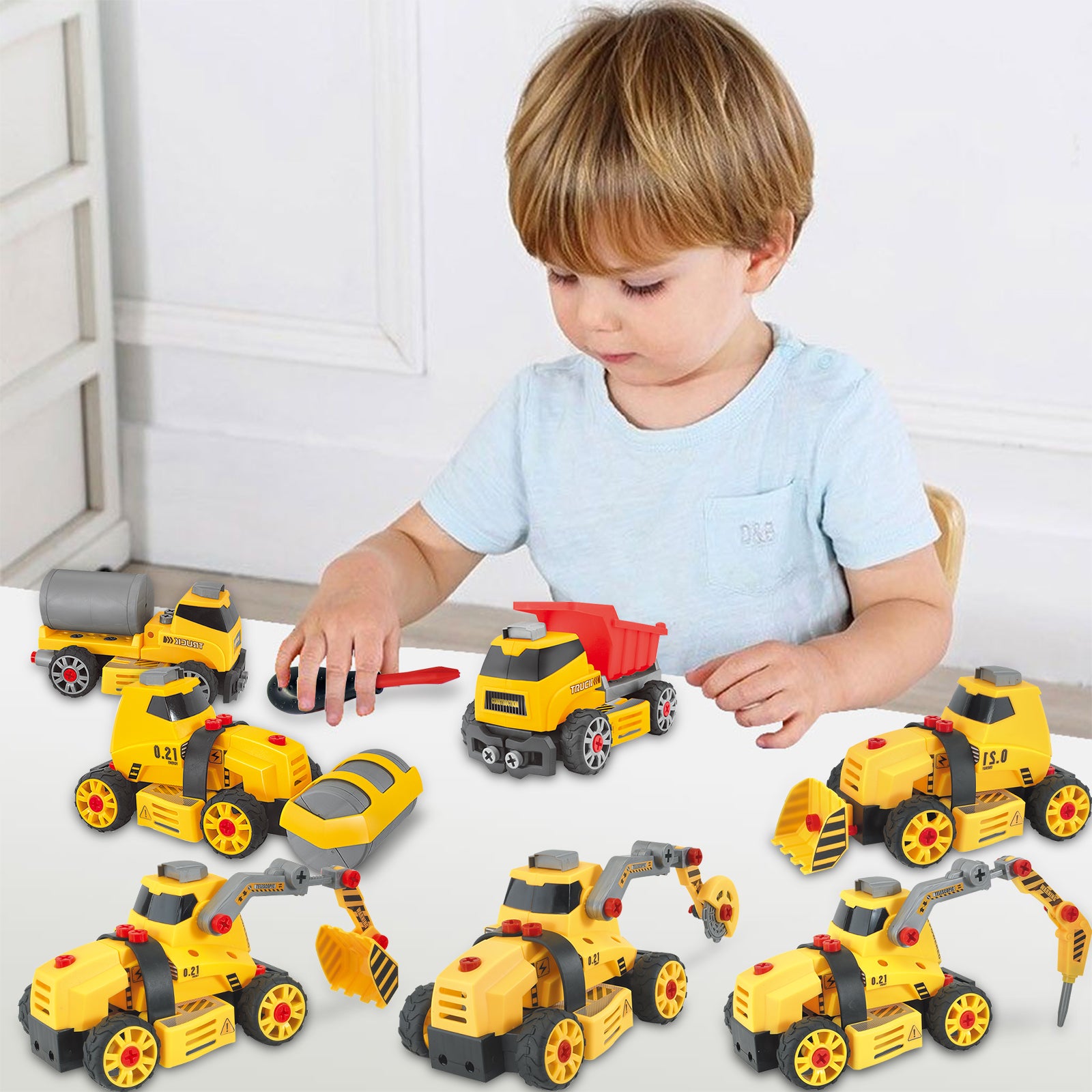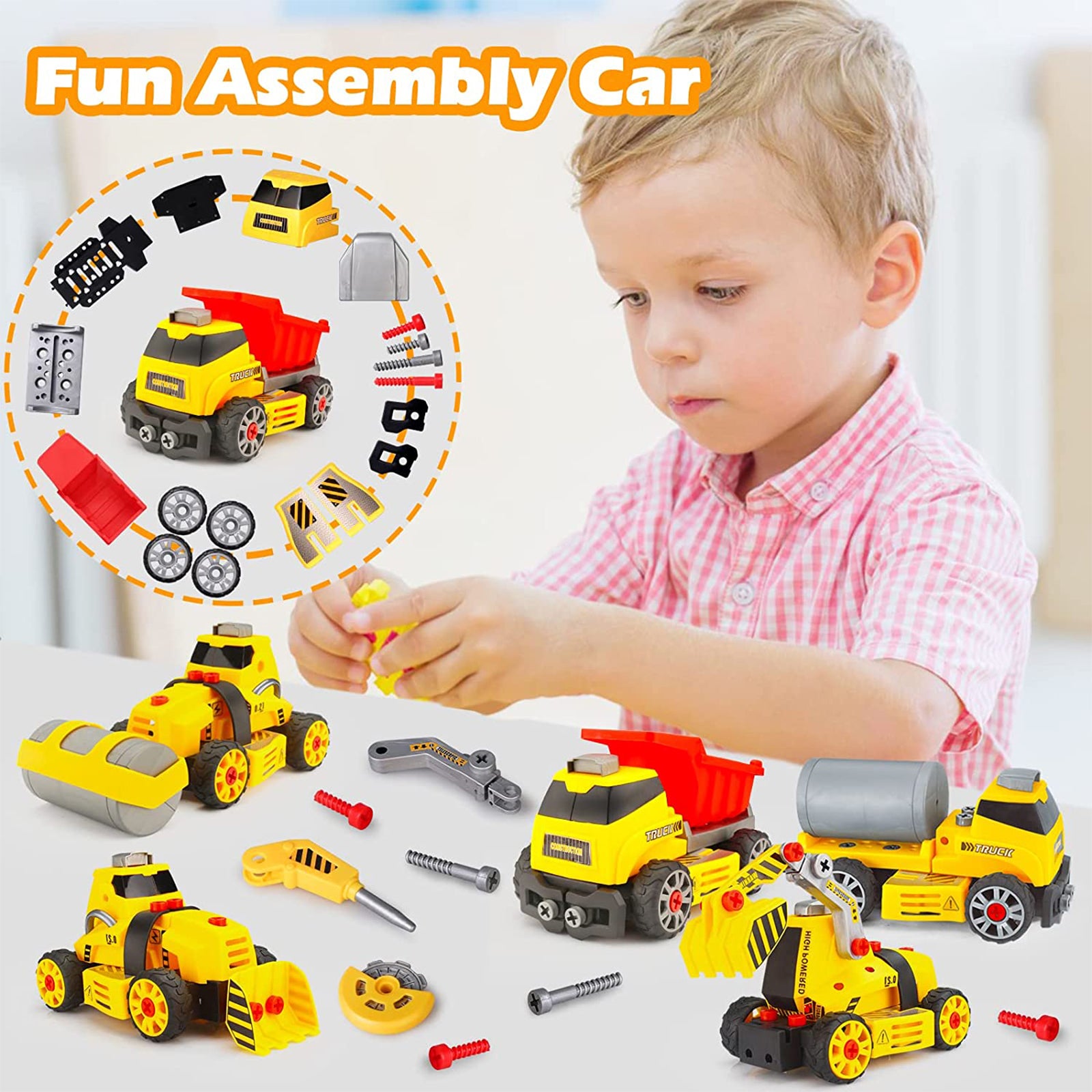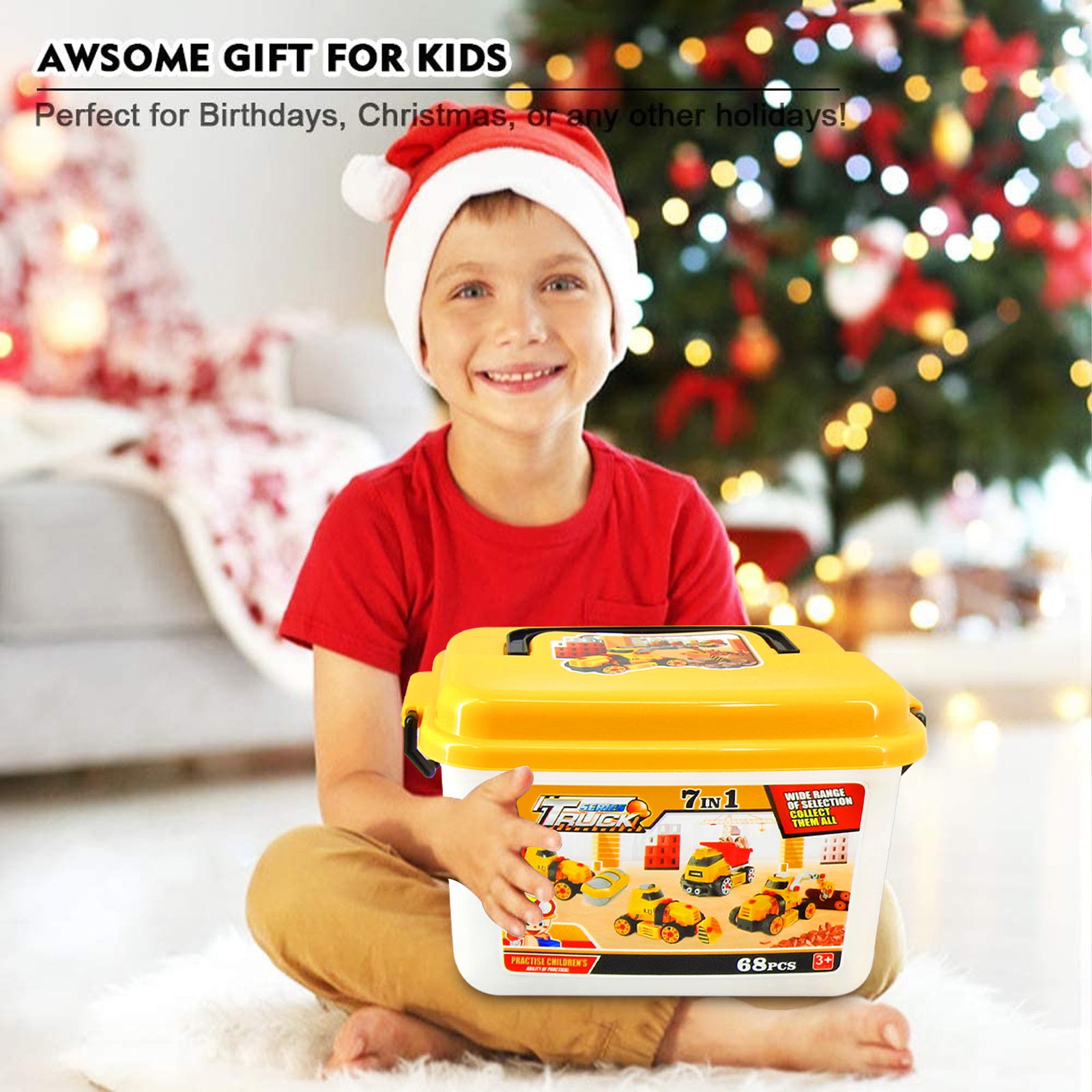 【FRICTION POWER! PUSH & GO】With Yexmas Toys your children, nephews and nieces are safe. Yexmas truck tool toy is made of durable and safe materials that will withstand countless hours of playing indoor and outdoor Use the included large storage box to safely store all parts when are not in use or to take these put together construction trucks and tools on a trip with family and friends