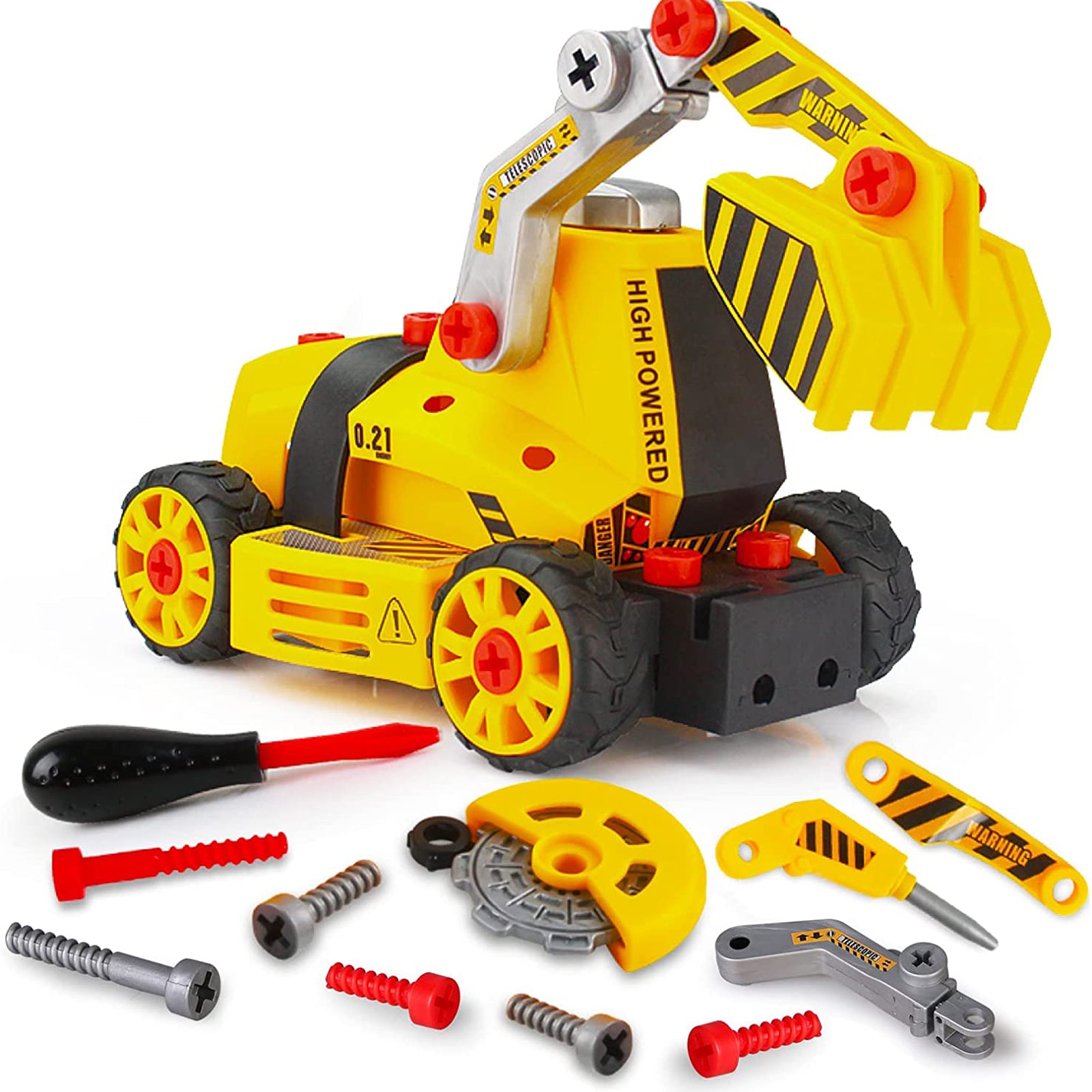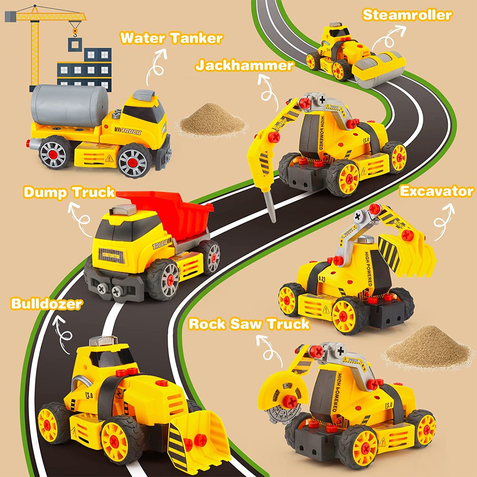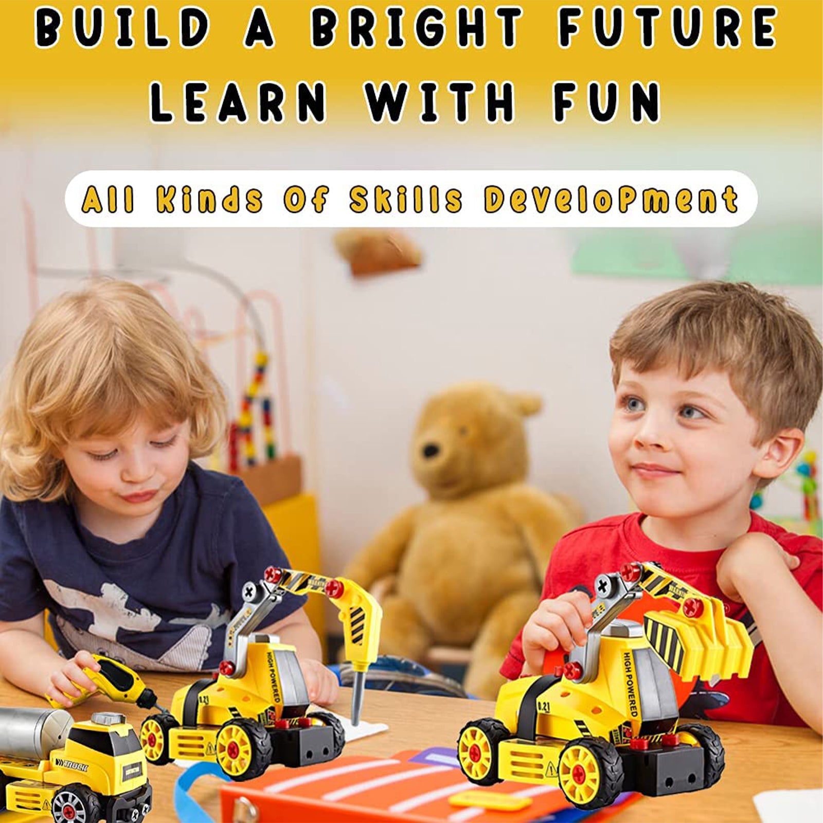 【FRICTION POWER! PUSH & GO】With Yexmas Toys your children, nephews and nieces are safe. Yexmas truck tool toy is made of durable and safe materials that will withstand countless hours of playing indoor and outdoor Use the included large storage box to safely store all parts when are not in use or to take these put together construction trucks and tools on a trip with family and friends