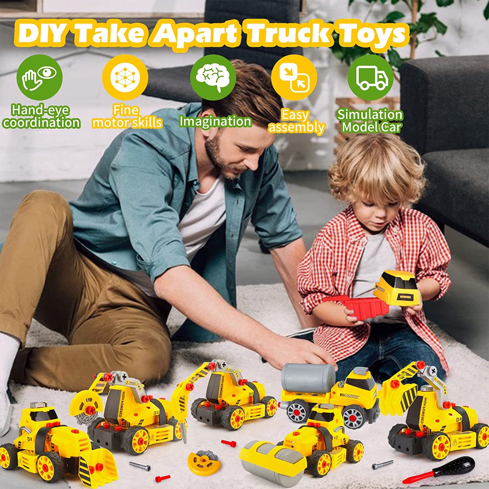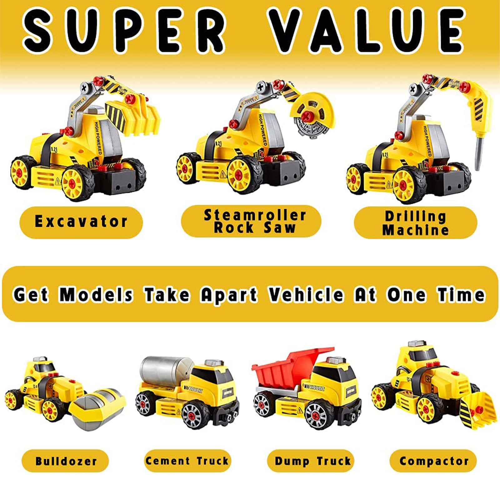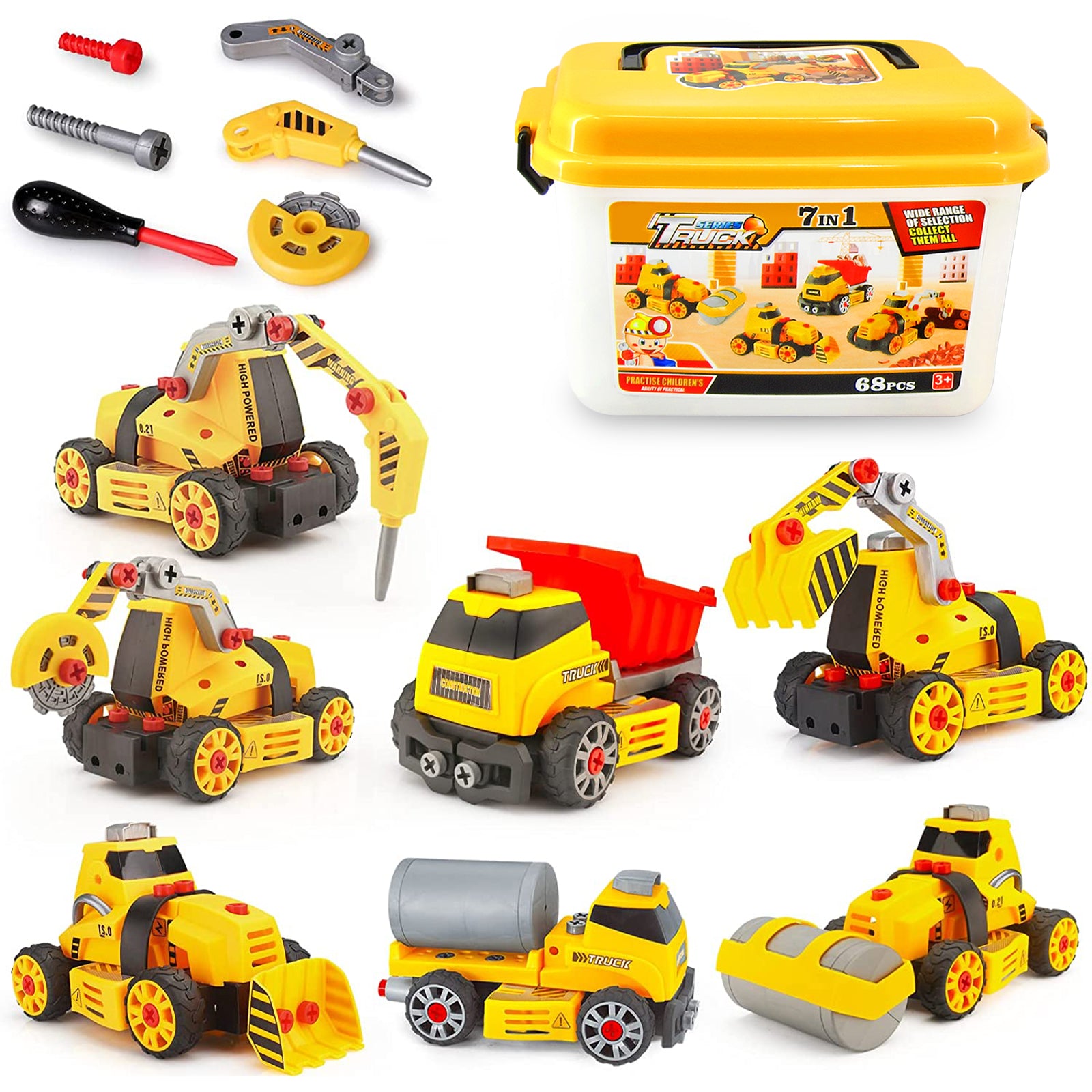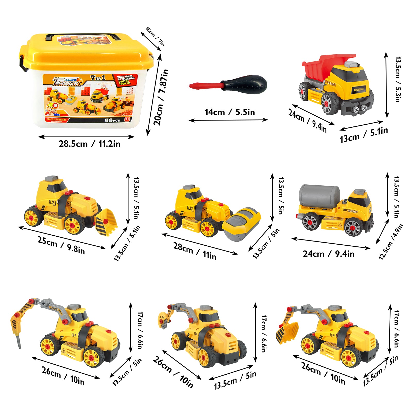 Funbty 7-in-1 Take Apart Construction Truck Toy with Storage Box – STEM Learning Toy & DIY Building Play Set for 4 - 5 -6 - 7 - 8 Years Kids Boys Girls