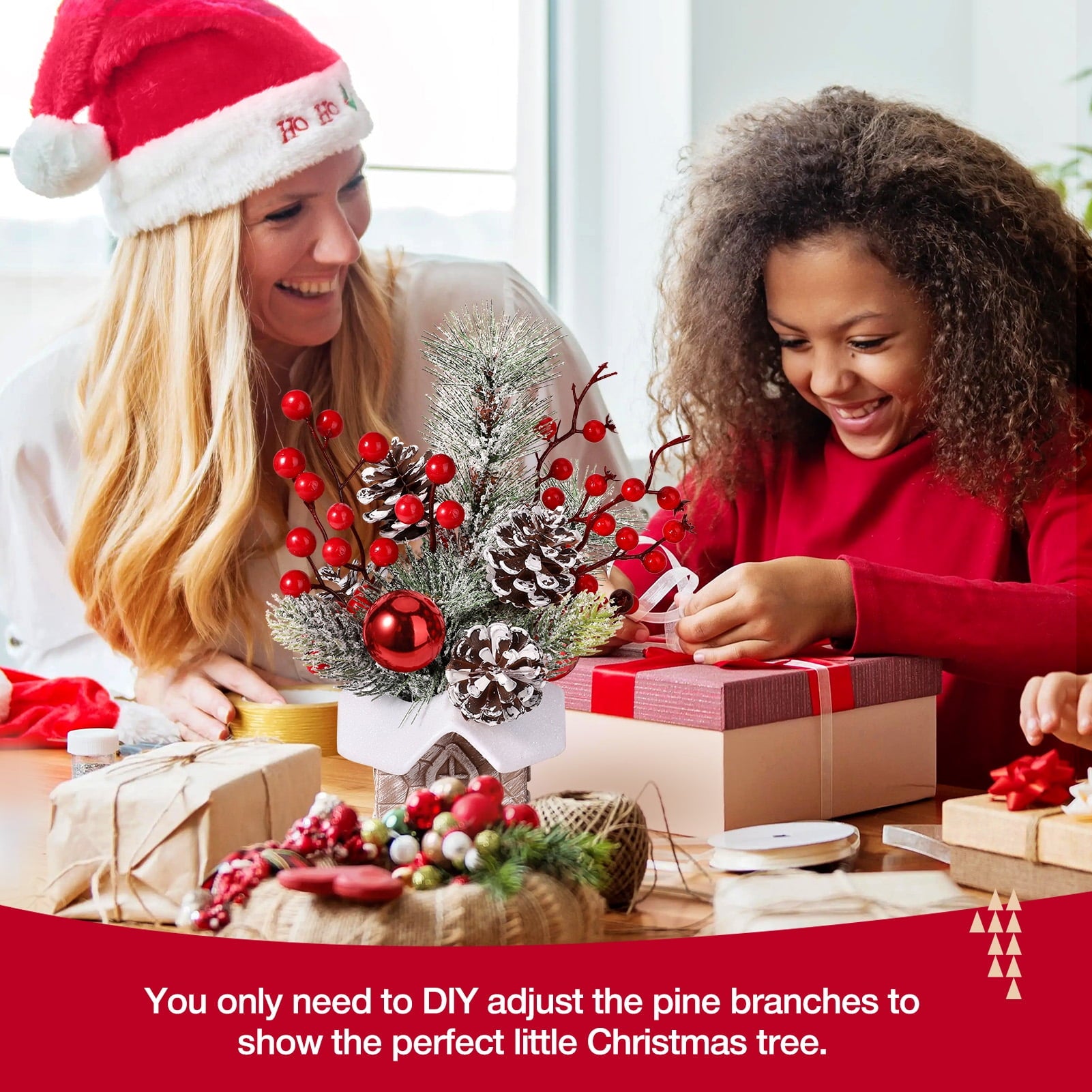 Funbty Artificial Mini Tabletop Christmas Tree Decorations with Christmas Ornaments, Small Christmas Tree for Home Party Thankgivings Christmas Decor Indoor, Red