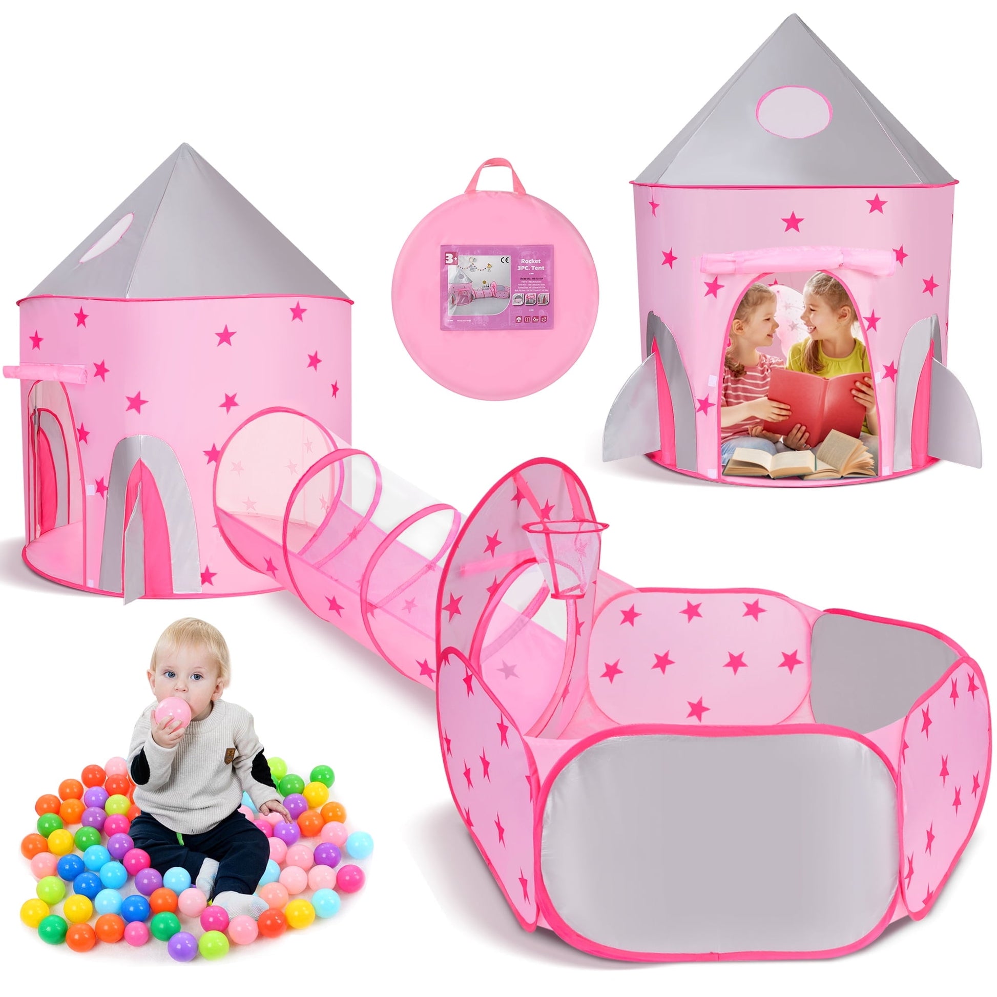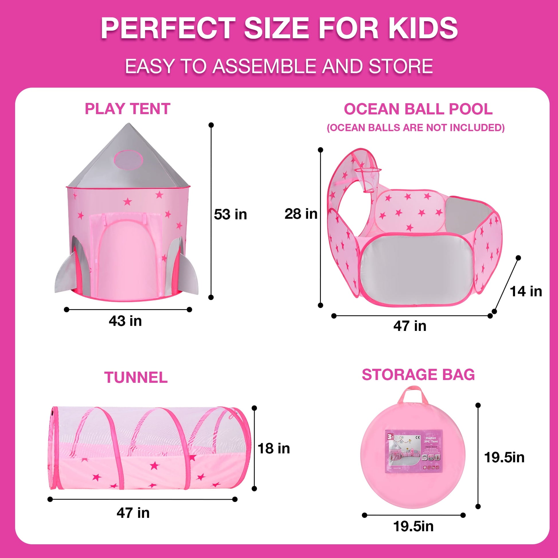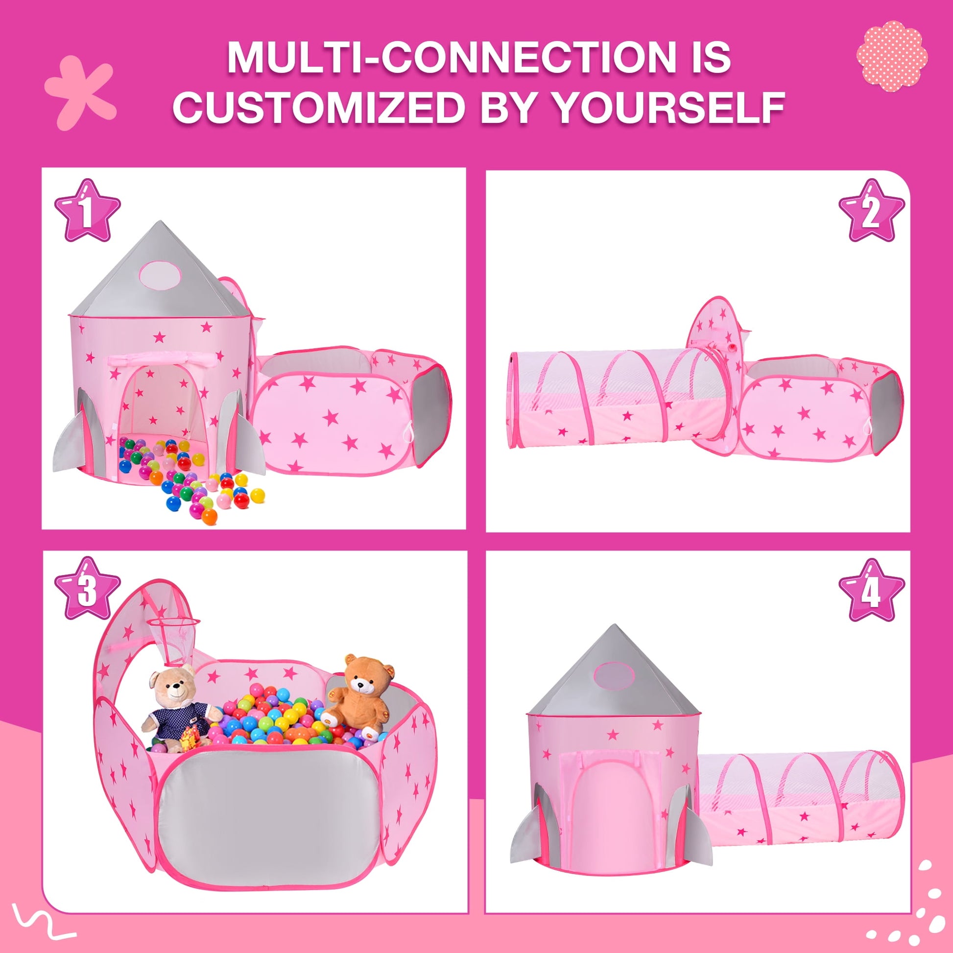 Funbty Kids Play Tent, 3 in 1 Play Tents Tunnel Set with Ball Pit and Storage Bag, Indoor Outdoor Toy Tent for Toddlers Kids Toy Gifts, Pink (No Ball)