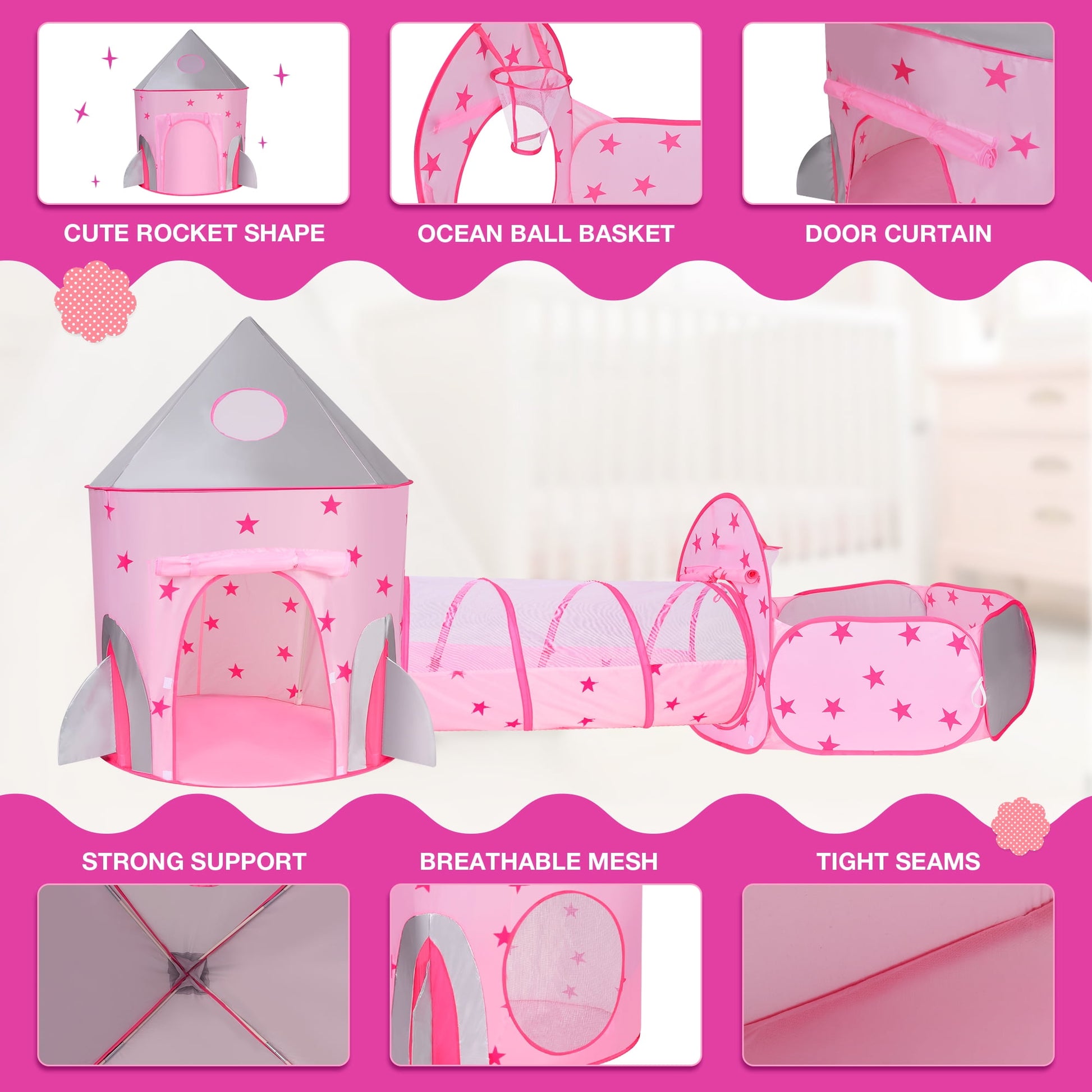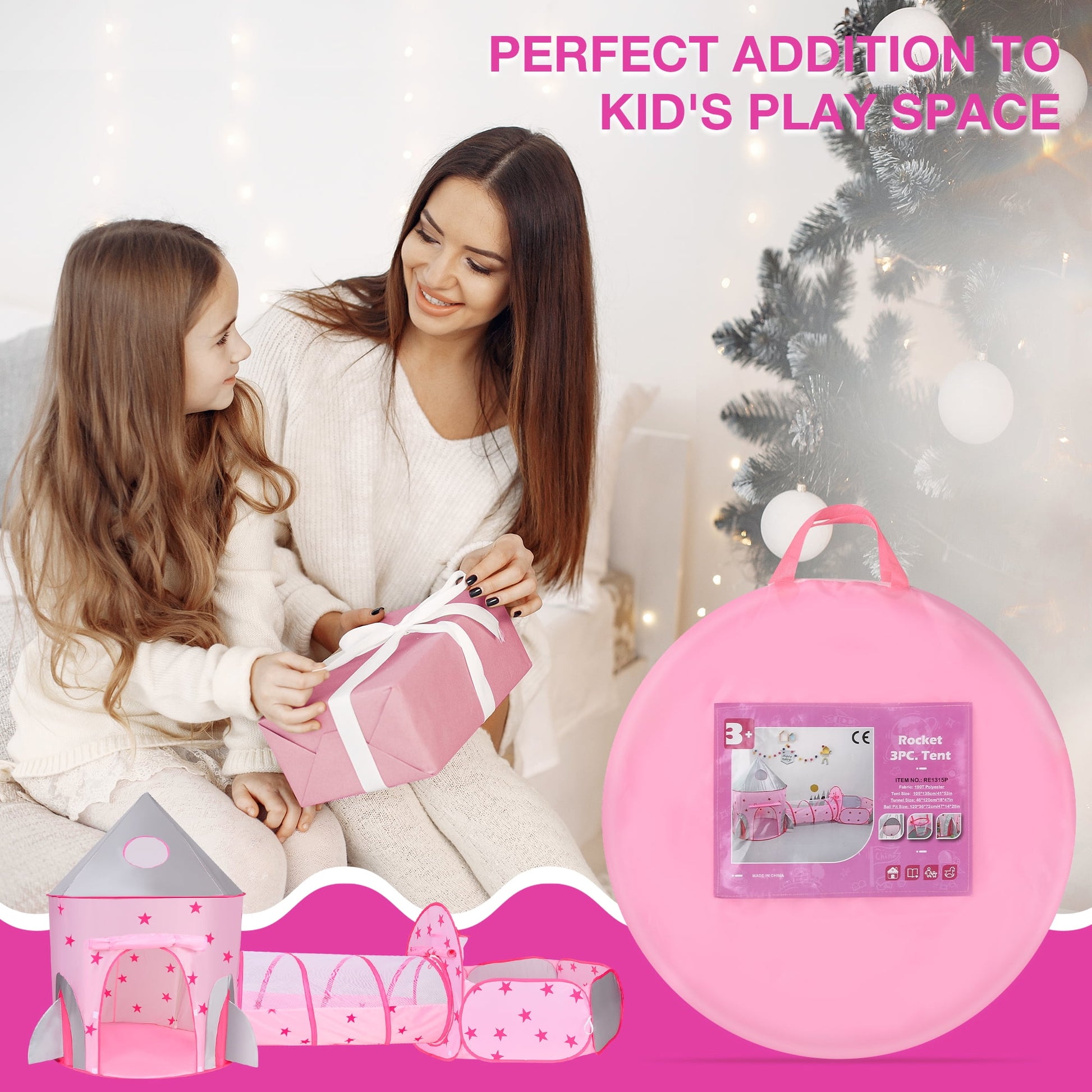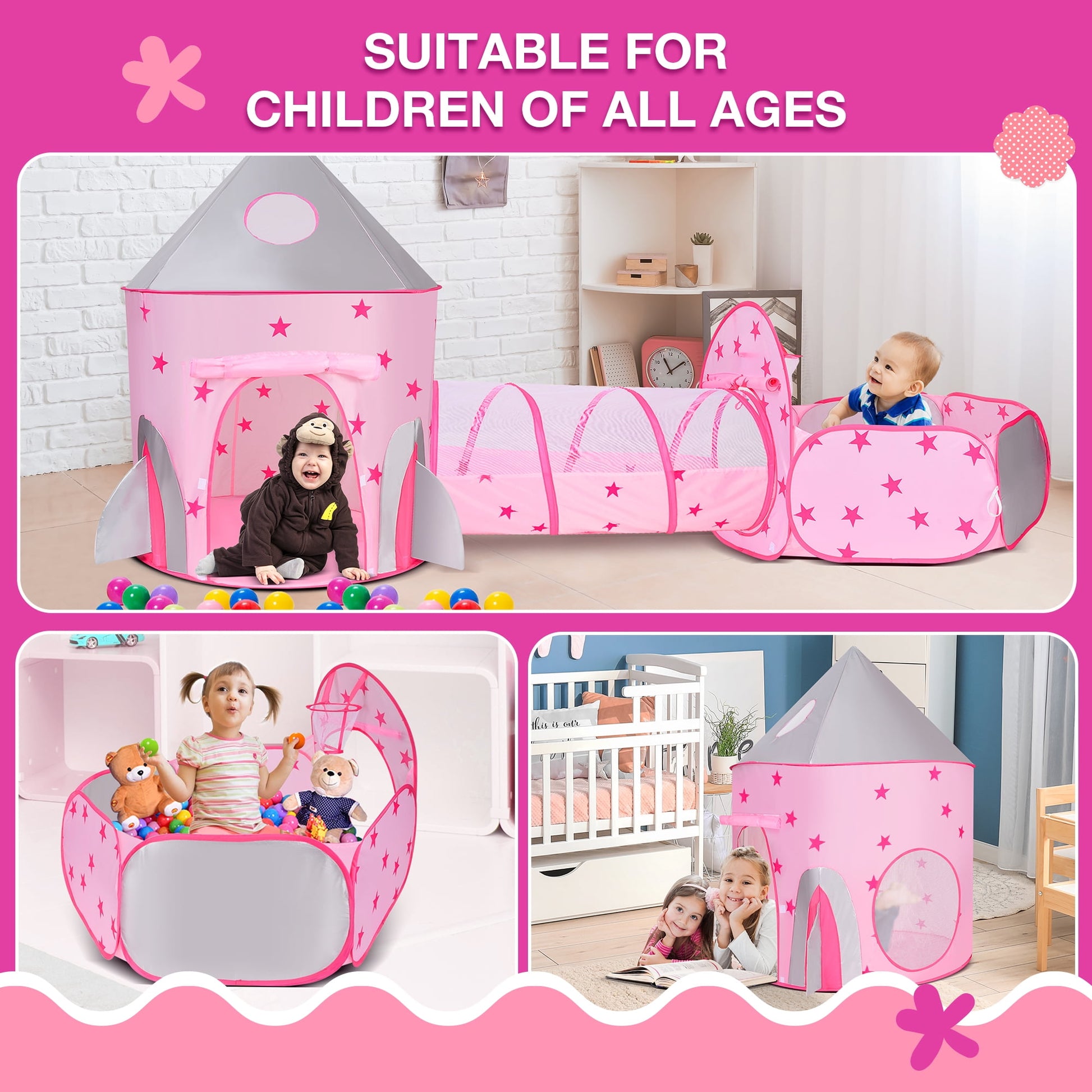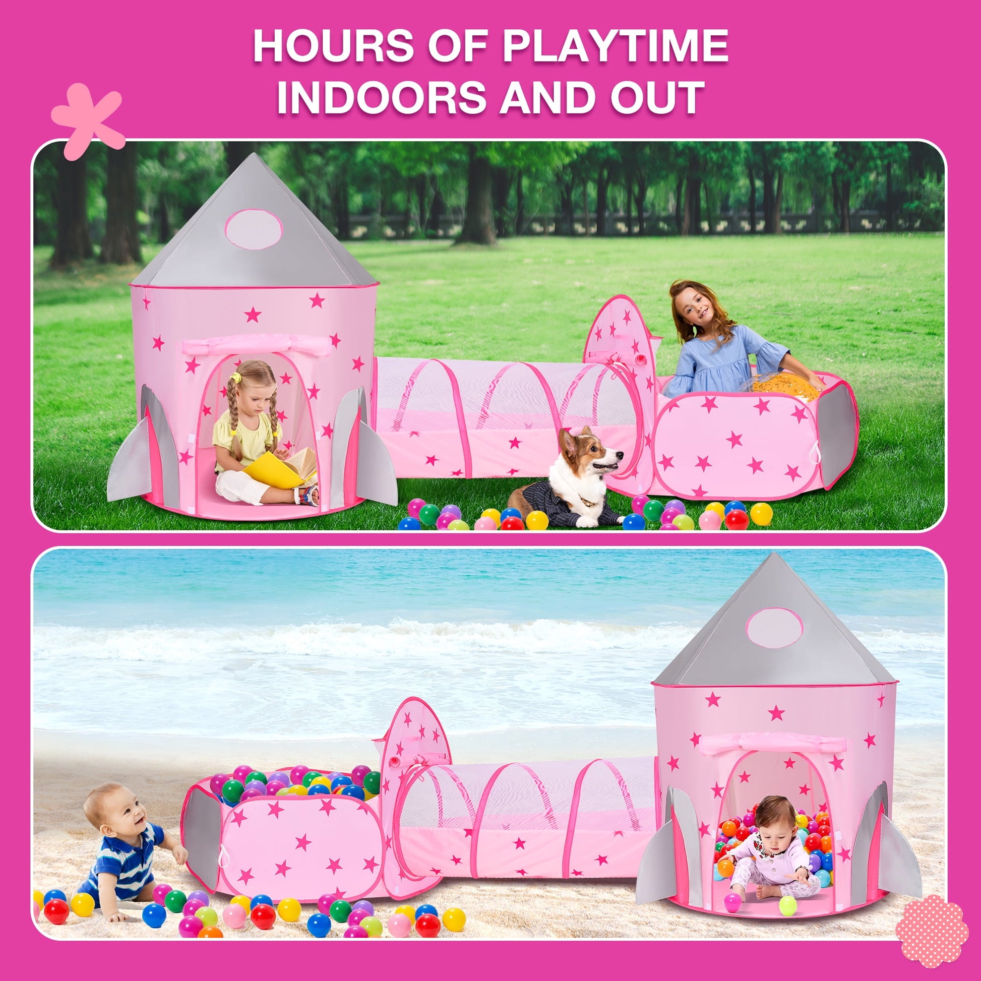 Funbty Kids Play Tent, 3 in 1 Play Tents Tunnel Set with Ball Pit and Storage Bag, Indoor Outdoor Toy Tent for Toddlers Kids Toy Gifts, Pink (No Ball)