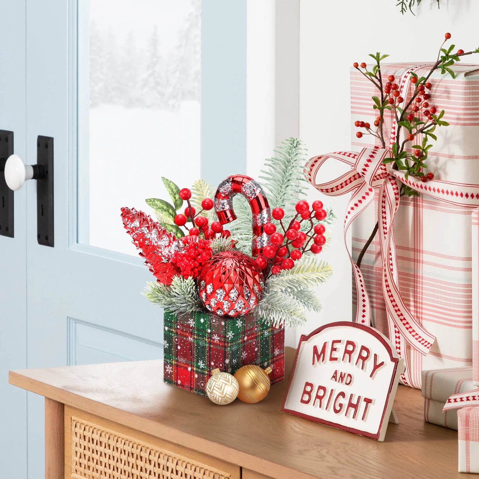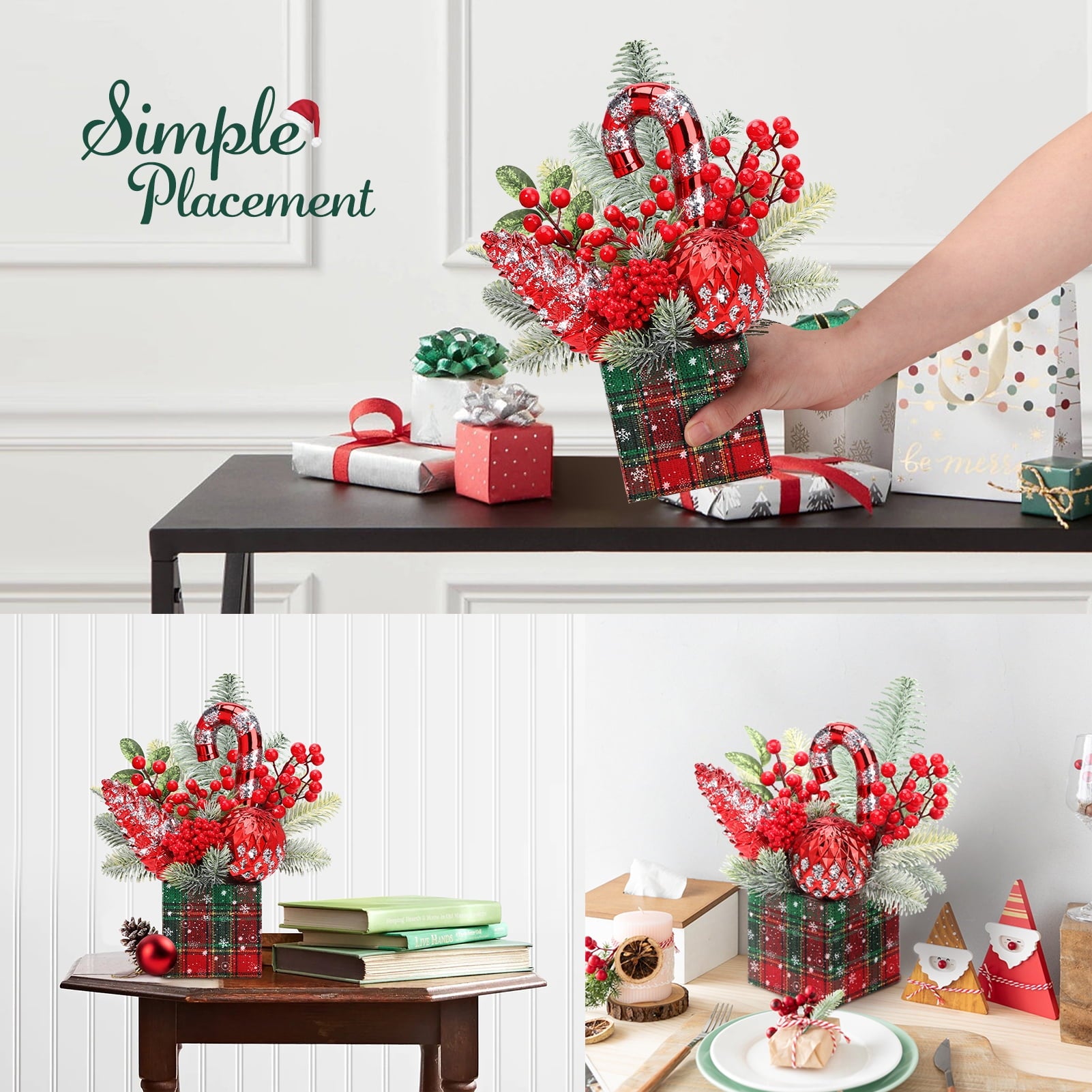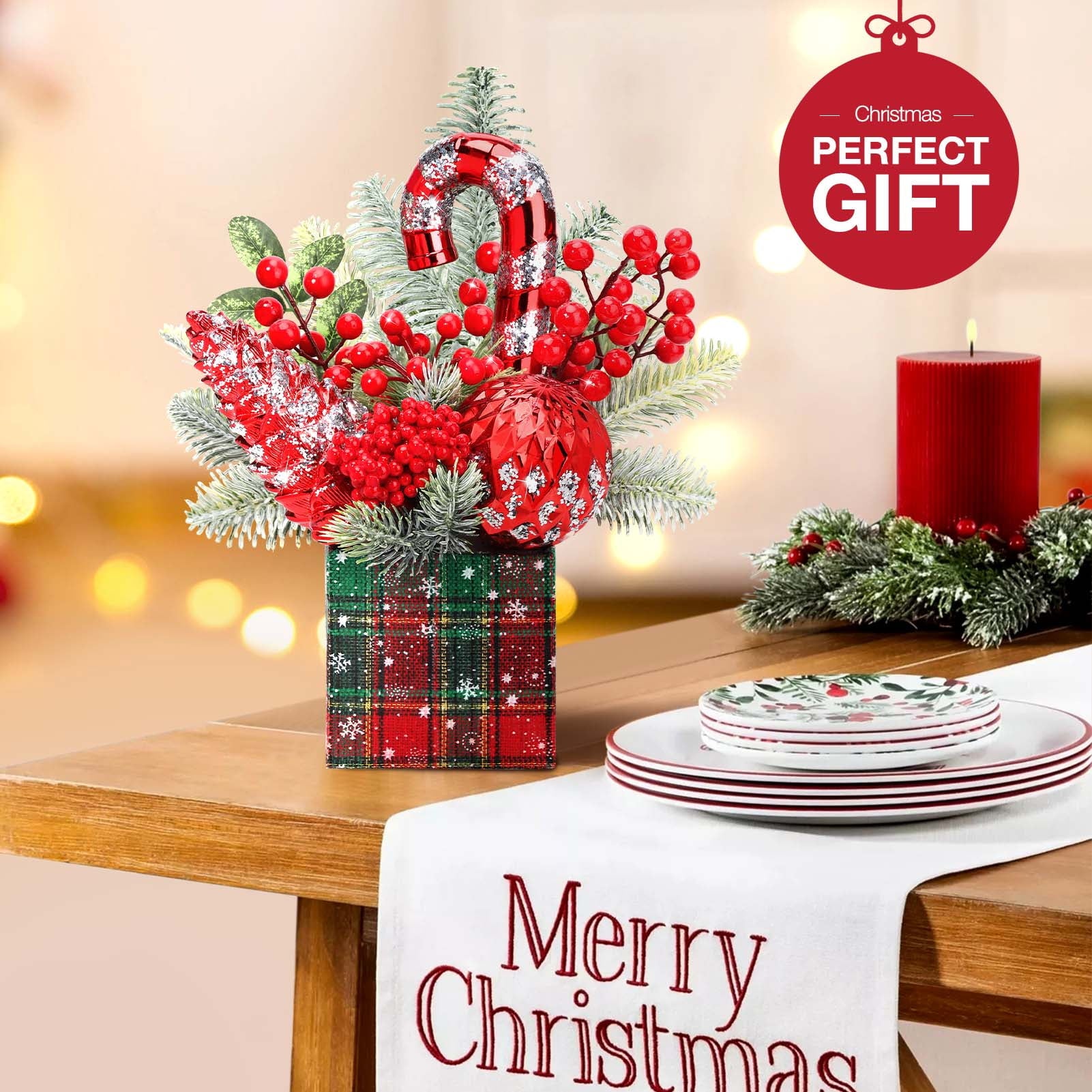 Funbty Mini Christmas Tree with Pine Cone Berry, Bottle Brush Christmas Trees for Christmas Decorations Indoor, Christmas Tabletop Decor Centerpiece | Square