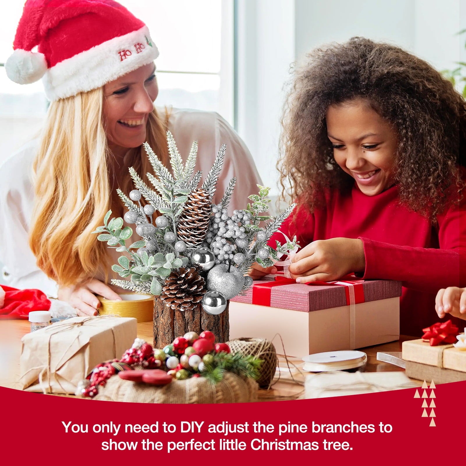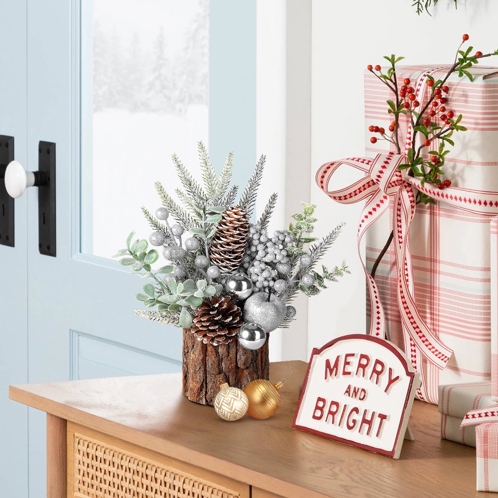 Funbty Small Christmas Tree, Artificial Mini Tabletop Christmas Tree Decorations with Christmas Ornaments, for Xmas Party Thankgivings Christmas Decor (Silver)